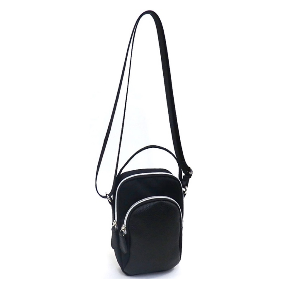 品番:LP-0187B 表地:ナイロン(撥水加工) 附属:シュリンク牛革 裏地:ポリエステル サイズ:12-18-5 ハンドル高さ:5㎝ ショルダー立上り:29~60㎝ 重さ:140g カラー:ブラック/Lグリーン/Lグレー/オレンジ/ピンク 口元仕様:ファスナー式 外ポケット仕様:ファスナーX1,オープンX1 -